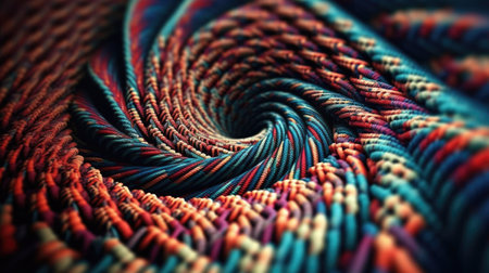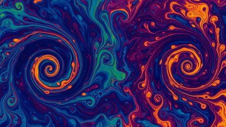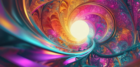 Abstract swirling vortex of vibrant multicolored lines and textures. Dynamic spiral pattern with flowing rainbow colors and intricate details