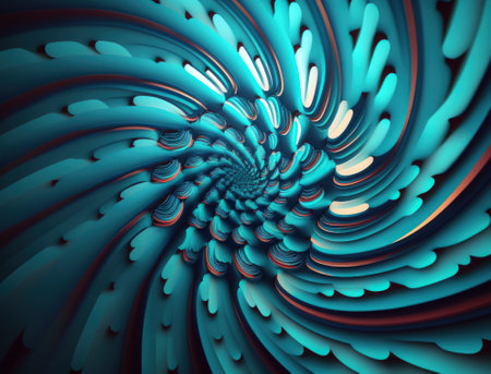 A striking pattern of bold overlapping shapes in shades of turquoise and teal representing the untamed energy and movement of a swirling tornado