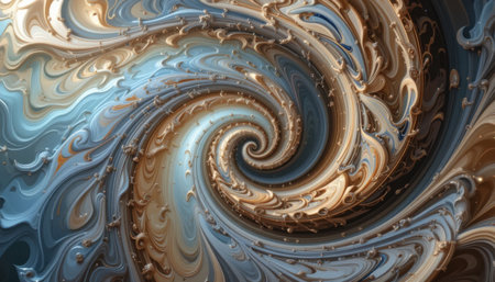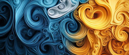 Abstract swirls of blue and gold blend seamlessly, showing intricate patterns in a modern digital art creation.