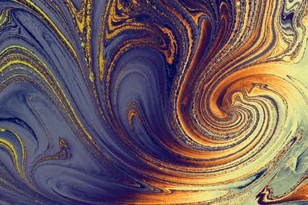 Abstract blue and golden marbling pattern. Golden marble liquid texture.