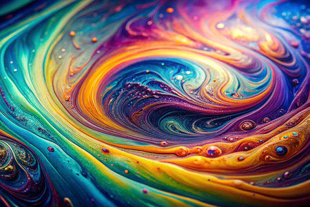 Vibrant swirling colors, abstract paint, bubble patterns, bright background