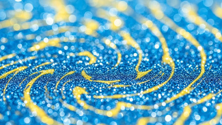 Intricate abstract patterns in vibrant blue and gold hues create captivating visual depth