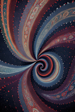 A visually stunning abstract image featuring a dynamic red and blue spiral with circular orbit rotation. This design is ideal for creative projects, futuristic concepts, and presentations with a