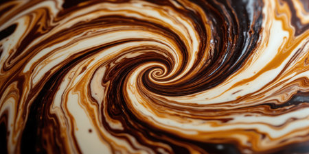 Coffee Cream Swirl Macro view of coffee and cream mixing in spiral patterns, rich brown and ivory tones, soft natural