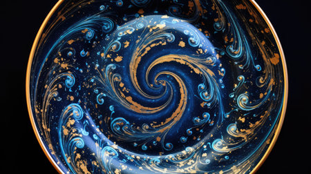 A captivating abstract design featuring swirling patterns in rich gold and deep blue. This visual artwork creates a beautiful and harmonious balance, perfect for backgrounds or decorative elements.