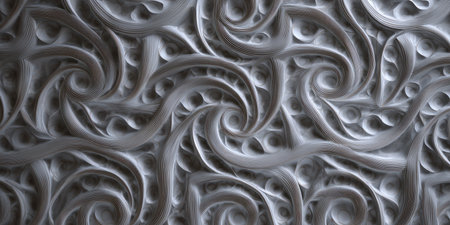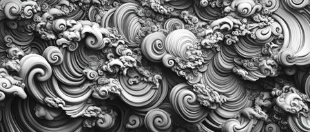 Intricate abstract patterns with flowing textures and detailed designs in monochrome hues