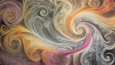 Abstract swirling vortex of vibrant multicolored lines and textures. Dynamic spiral pattern with flowing rainbow colors and intricate details