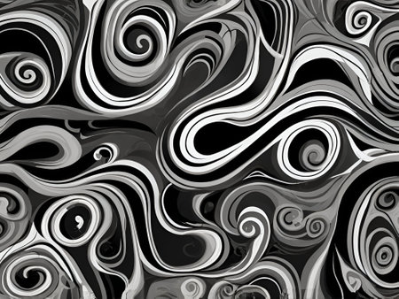 Abstract black and white background with a pattern of spirals and curls