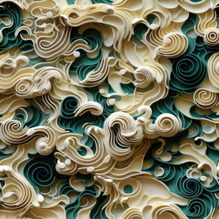 Quilling waves made of white paper in a surrealistic style (tiled)