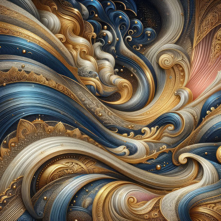Intricate abstract patterns in vibrant blue and gold hues create captivating visual depth