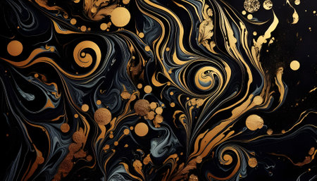 Abstract Fluid Gold Luxury Liquid gold and black ink swirl together in luxurious patterns suggesting wealth and elegance. Macro photography