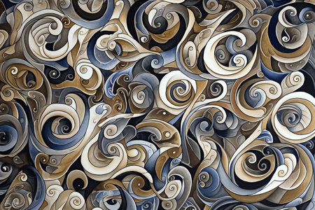 abstract background with swirls and curves in blue and brown colors