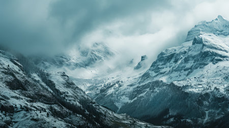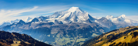 Panoramic view of the snowy mountains in the Swiss Alps.