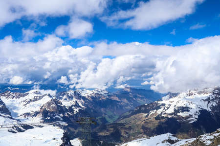 Alpine mountain scenery from the top of the Swiss Alps. High angle, clear, high quality, ample copy space