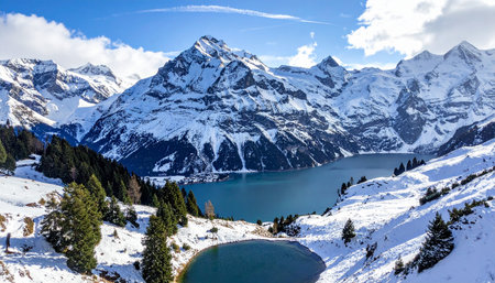 Panoramic view of the lake and mountains in the Alps, Switzerland