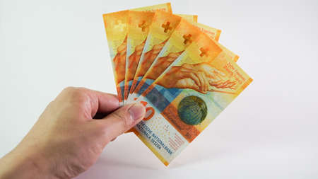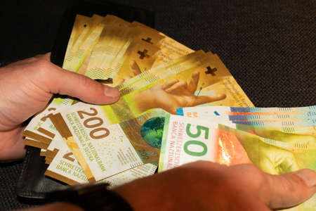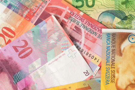 Swiss money, peso, paper banknotes, cash. Switzerland money for doing business, traveling