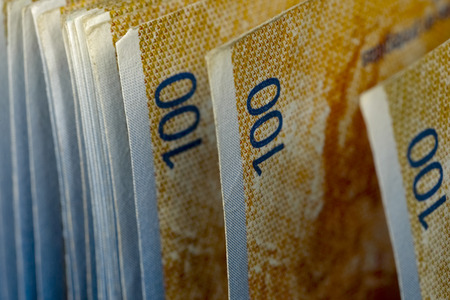Many swiss francs bills in cash with a value of one hundred each 27.5.2021