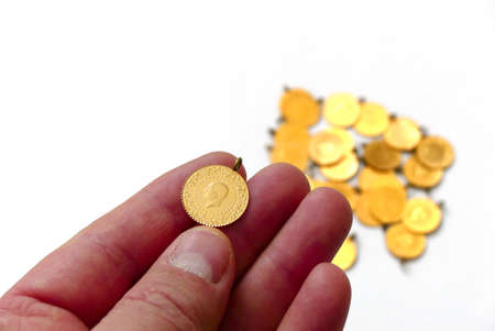 Turkish Ottoman style gold coin on white background