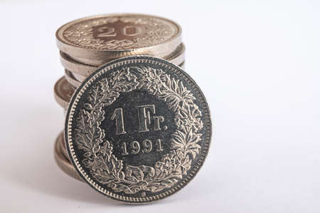 Swiss franc coins. Value of the Swiss Franc and exchange rate trend.