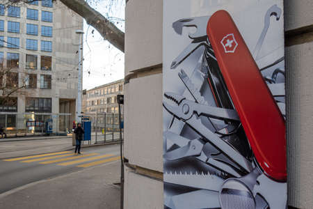 Zurich, Switzerland - January 10, 2021: The Swiss Army knife is a multi-tool pocketknife manufactured by Victorinox.