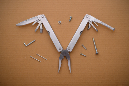 Multitool bird on cardboard. A tool for a variety of cases.