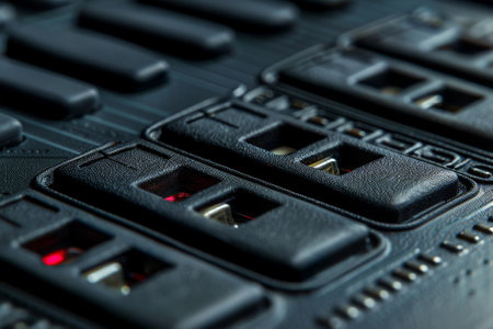 Red emergency stop buttons on a control panel ai generated