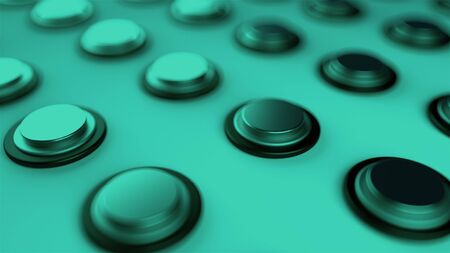 Surface with numerous repeating metal buttons, isometric background, modern computer generated 3d rendering backdrop