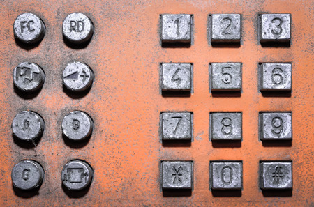 Old button number public telephone, Close up image