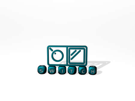 3D illustration of switch graphics and text made by metallic dice letters for the related meanings of the concept and presentations. background and button
