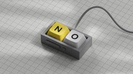 Computer keyboard keys with text no. Negative answer concept. No risk, no violence or no discrimination concept. 3D rendering on white background.