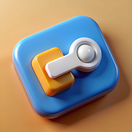 Abstract 3D illustration of a colorful button with a white handle. Perfect for user interface design. web design. mobile app design. and social media graphics.