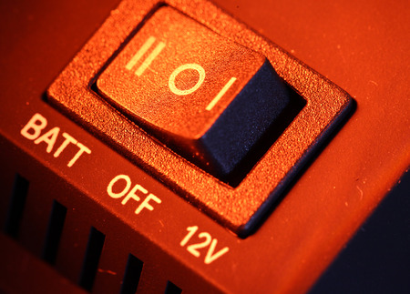 Close-up of a power switch on a control panel, with a clean background above for text.