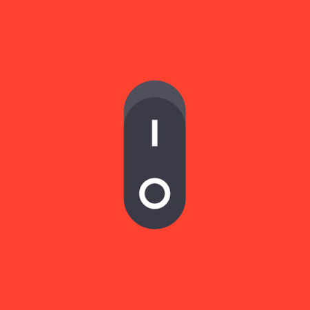 A close-up view showcases a white on-off switch with bold black text. The switch features two circular buttons, labeled 'ON' and 'OFF', set against a clean, light-colored backdrop. The image presents a simple, minimalistic aesthetic, possibly suitable for various applications related to technology and design.