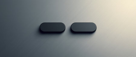 Two smooth, black buttons rest symmetrically on a softly lit gradient background, creating a striking visual contrast. This minimalist composition evokes a sense of modernity and simplicity, inviting viewers to contemplate functionality and design.
