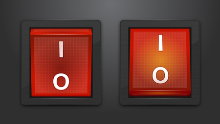 Power on off switch or start and stop button concept. Light switch with on off word on orange background