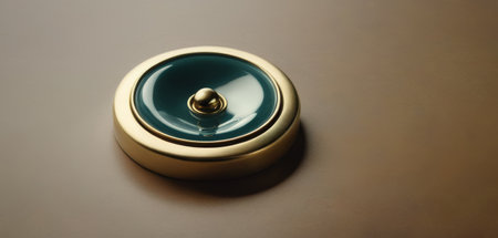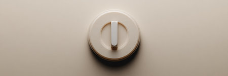 Centralized minimalist power button icon on a neutral surface highlights accessibility while providing ample text space for personalized content.
