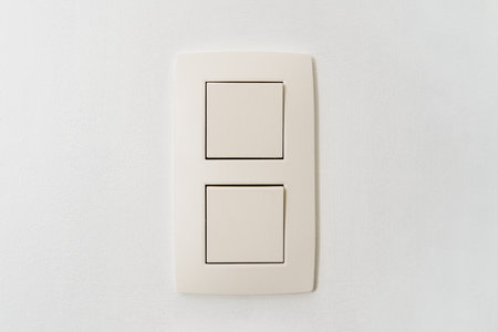 white electric switch on white background, lamp's switch for home electric, 110-250 volt switch in Thailand