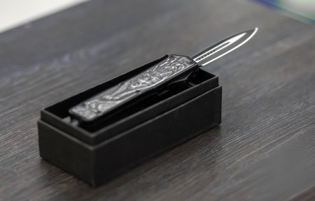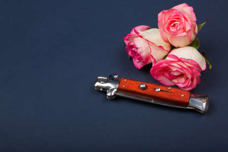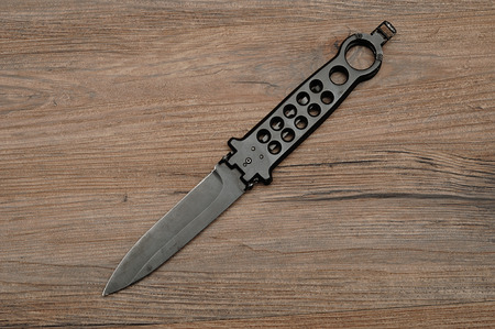 Switchblade knife on wooden background
