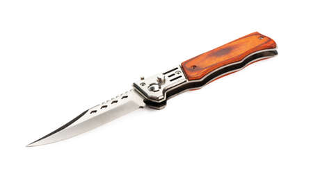 Penknife with the wooden handle on a white background
