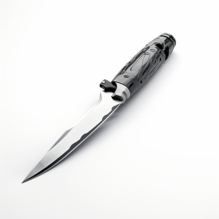 a photo of a japan tactical blade knife in a psd file, featuring a realistic still life composition with dramatic lighting. the image showcases intricate details in a monochrome style, with a marbleized effect. the use of kodak ektar film adds a contemporary touch, highlighting the knife's sleek design. the composition also includes elements of glass inlay and influences from the artistic movement of hurufiyya.