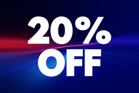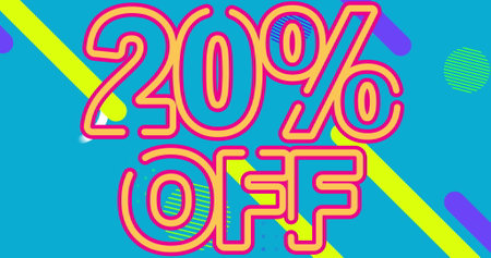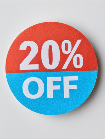 White '20% OFF' Promotional Sign on a Multicolor Background