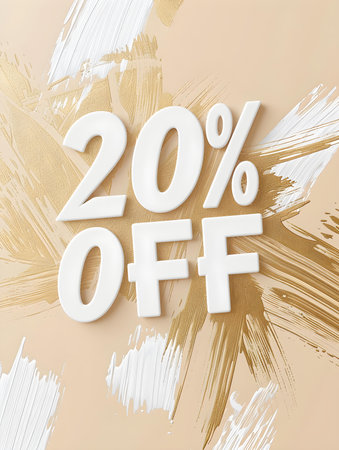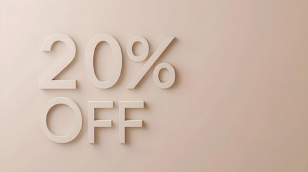 Beige '20% OFF' Promotional Sign on a Beige Background