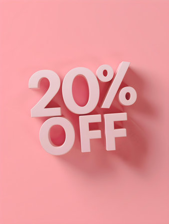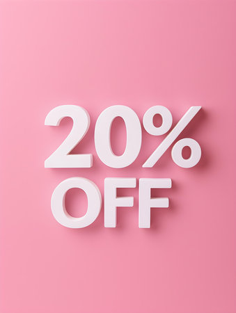 White '20% OFF' Promotional Sign on a Light Pink Background