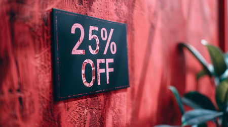 Black '25% OFF' Promotional Sign on a Red Background with Copy Space