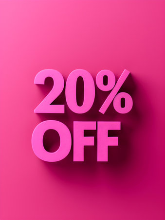 White '20% OFF' Promotional Sign on a Hot Pink Background