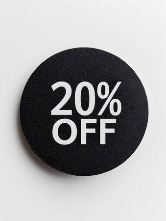 White '20% OFF' Text on an Anthracite Round Paper Note. White Background