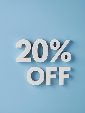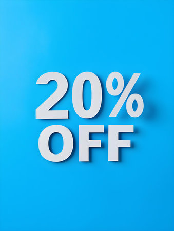White '20% OFF' Promotional Sign on a Light Blue Background