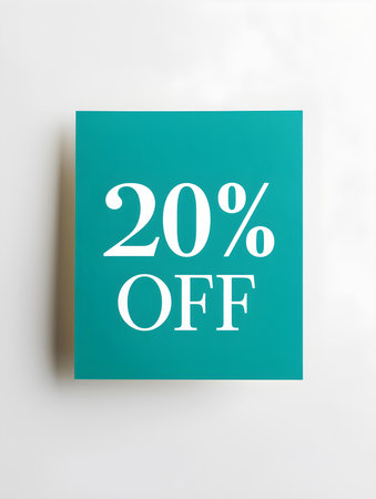 White '20% OFF' Promotional Sign on a Turquoise Background