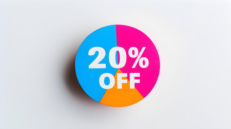 White '20% OFF' Text on a Multicolor Round Paper Note. White background with copy space
