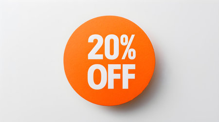 White '20% OFF' Text on an Orange Round Paper Note. White background with copy space